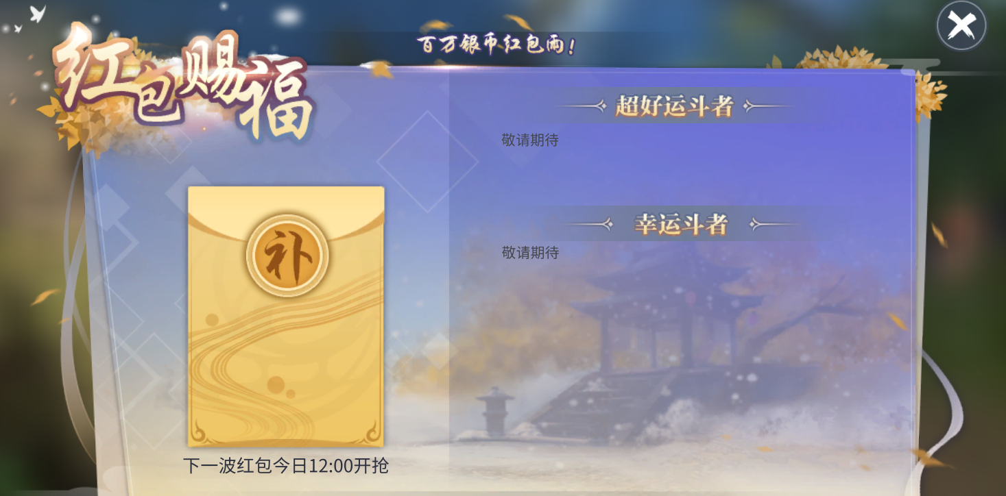 新年新气象,远古强者们特地现身为大家带来新年红包雨!活动期间内每天12:00 — 13:00,20:00 — 21:00上线的斗者可免费领取,不小心错过时间的斗者也可以花费50金币进行补领~